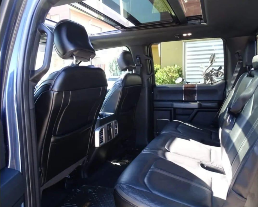 Versión Platinum, motor V8 5.0 litros, tracción 4×4, caja automática, tapiz de cuero, asientos eléctricos calefaccionados y ventilados, techo panorámico, climatizador bi-zona, sistema SYNC con pantalla touch, navegador GPS, cámara de retroceso, sensores de estacionamiento delanteros y traseros, volante multifuncional, control crucero adaptativo, sistema de audio premium, estribos laterales eléctricos, llantas de aleación de 20”.
